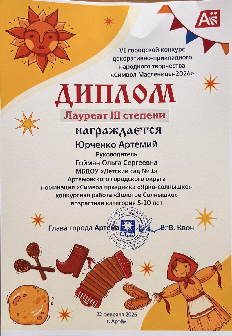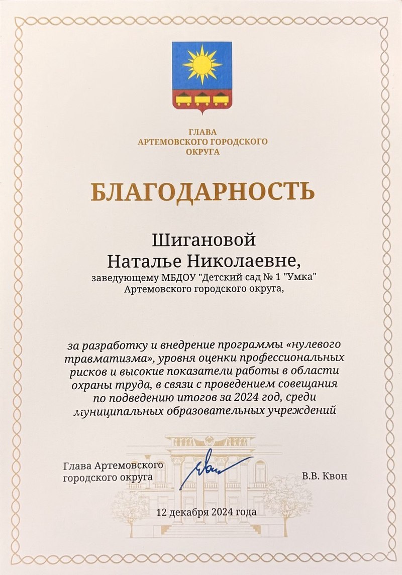 "Детский сад № 1 "УМКА" Артемовского городского округа