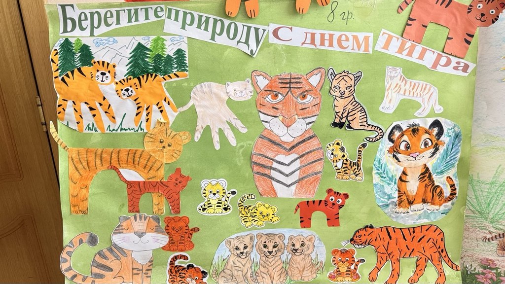 Выставка творческих работ, посвященная Дню тигра на Дальнем Востоке, открылась в нашем детском саду!